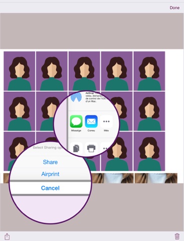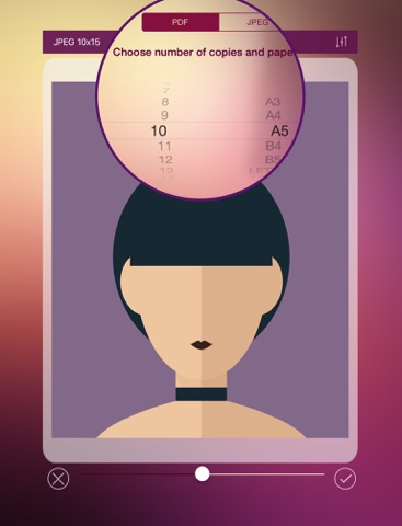• Select output format (JPG or PDF) and different sizes. (10x15, A4…).