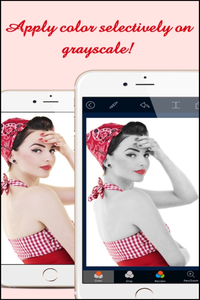 [+] Color/Gray: Apply original color or gray on any part of the photo.