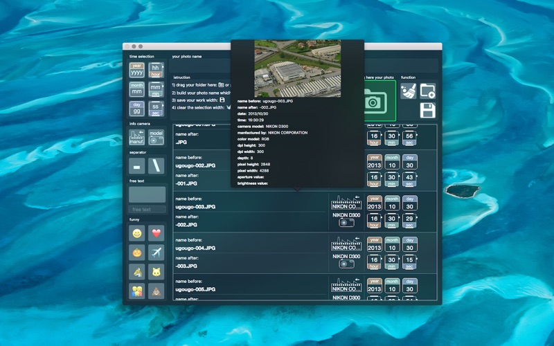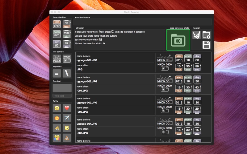 With "Photo Rename With MetaData" you can rename your photo using some metadata.