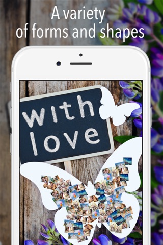 Create amazing shape photo collages from your photos and pictures with Shape Collages app.