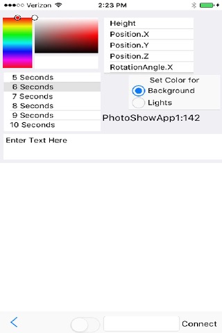 Photo Show is a Slide Show allowing you to view pictures wrapped around geometric shapes that rotate and move various ways. Multiple pictures can be selected and multiple audio files play in the background. Objects can be resized and moved in the window. Movement speeds can be set, and time between picture displays. Window background color can also be changed. You can select more Photos from your Camera Roll or Snap Pictures to any Geometric Shape at any time.