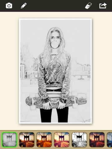Want to sketch your photos and remove some colors? Photo Sketch Eraser is the only app that can do both. Just see the effects in the screenshots.
