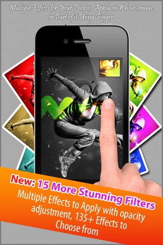 Intuitive and responsive user interface make it super easy and fun to use. Just select the effect and use your finger as a virtual paintbrush to apply any of the 140+ available effects your image.