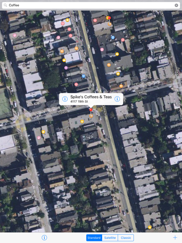 Photo Street Maps finds any location by zip code, partial address, store name or landmark name by typing, or by speaking the location, verbally.