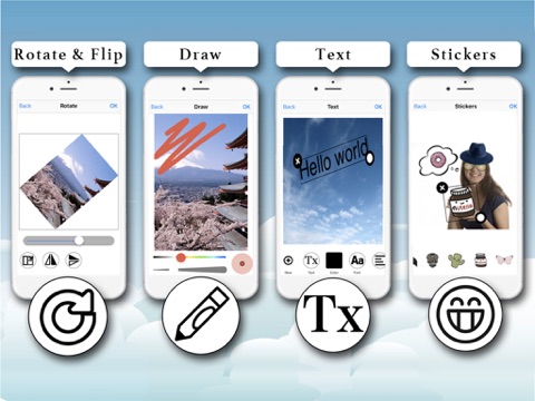 This tool allows you to vote for your pictures vertically or horizontally, freehand rotation, mirror effect vertical and horizontal.