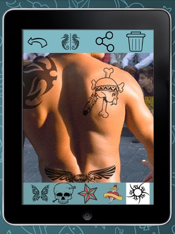 Very useful if you want to see how the tattoo you want to do will look on you. Choose among different options: pets, skulls, things, love or different tribal tattoos and enjoy your photos on a different way by placing and decorate photos with drawings. Use this app to see if you like to see the tattoos on you before you do them, because tattoos are not a game and they will stay forever on your skin.