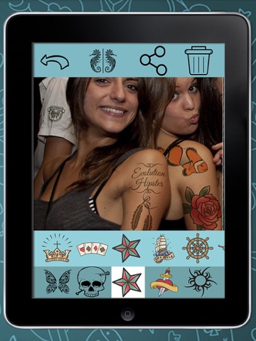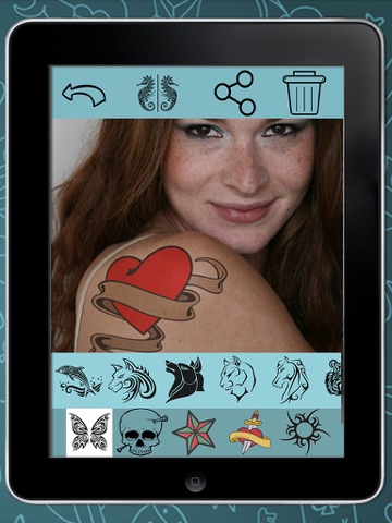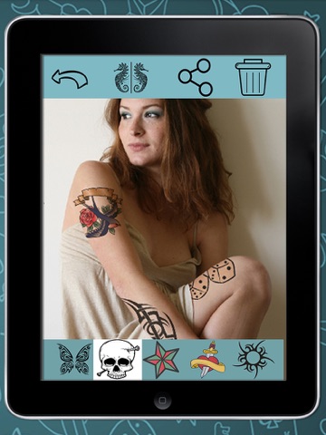 Very useful if you want to see how the tattoo you want to do will look on you. Choose among different options: pets, skulls, things, love or different tribal tattoos and enjoy your photos on a different way by placing and decorate photos with drawings. Use this app to see if you like to see the tattoos on you before you do them, because tattoos are not a game and they will stay forever on your skin.