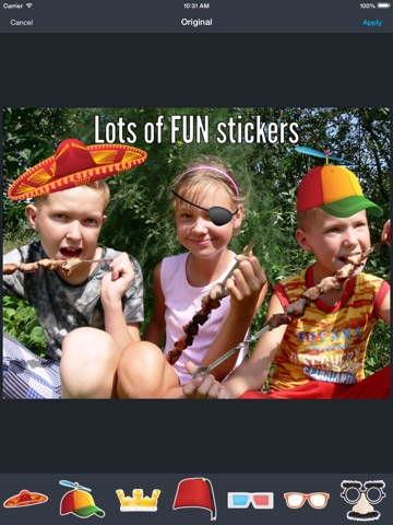 Share your photos by Instagram, mail, Twitter, Facebook or any other photo sharing apps.
