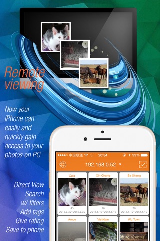 √ Organize your photos with tags, favorites, and date filter. You can use tags and favorites to sort and classify your photos, instead of folders. In this way, a photo can simultaneously belong to "2014", "France Trip" and "My Wife". You can filter your photos by defining a date range.