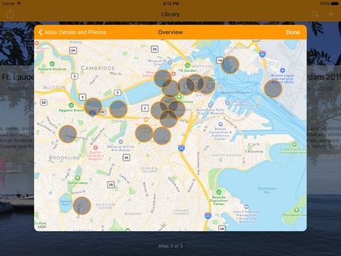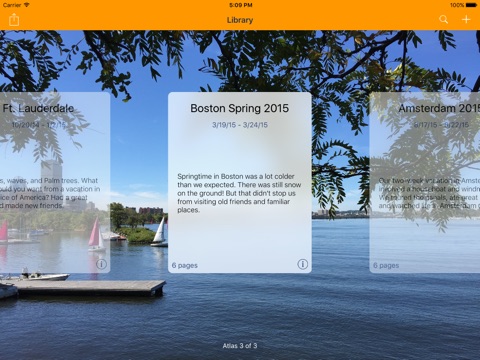 PhotoAtlas provides a way to relive your travels using a map-centric interface. Each journey is described by an Atlas - a collection of pages, one per day, of your journey - containing pins that locate specific places you have been. Each pin is a collection of photos and videos.