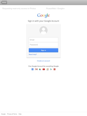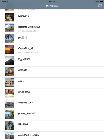 Once you use the Facebook, Google+ and Flickr logins, PhotoChrome will display a list of your Albums -- that you can select and slide-show preview.