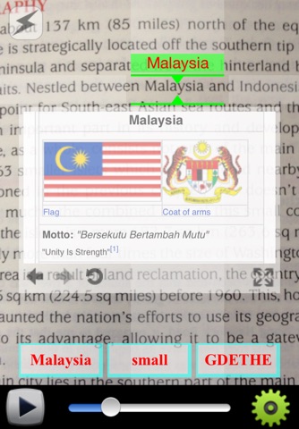 This app recognizes the original alphabetic word within the rectangle frame on the realtime view and puts the search button for the word at the bottom of the screen. By pressing the search button, you can see the meaning of the word in detail.