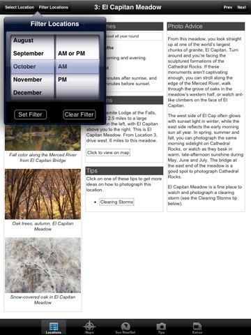 • Locations Filter—a unique feature that allows you to quickly find the best photo spots for any month and time of day.