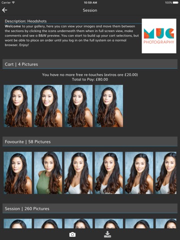 A dedicated application for viewing photo galleries linked to the Photo Workflow system. Features include the login system, favouriting, commenting, downloading final images and Black and White previews.