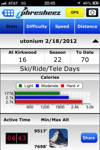 Track your epic day on Phresheez. Phresheez records your location while you explore the mountain. Take pictures which are automatically uploaded to phresheez.com. Maps and charts of your day show your speed, vertical, difficulty and runs.