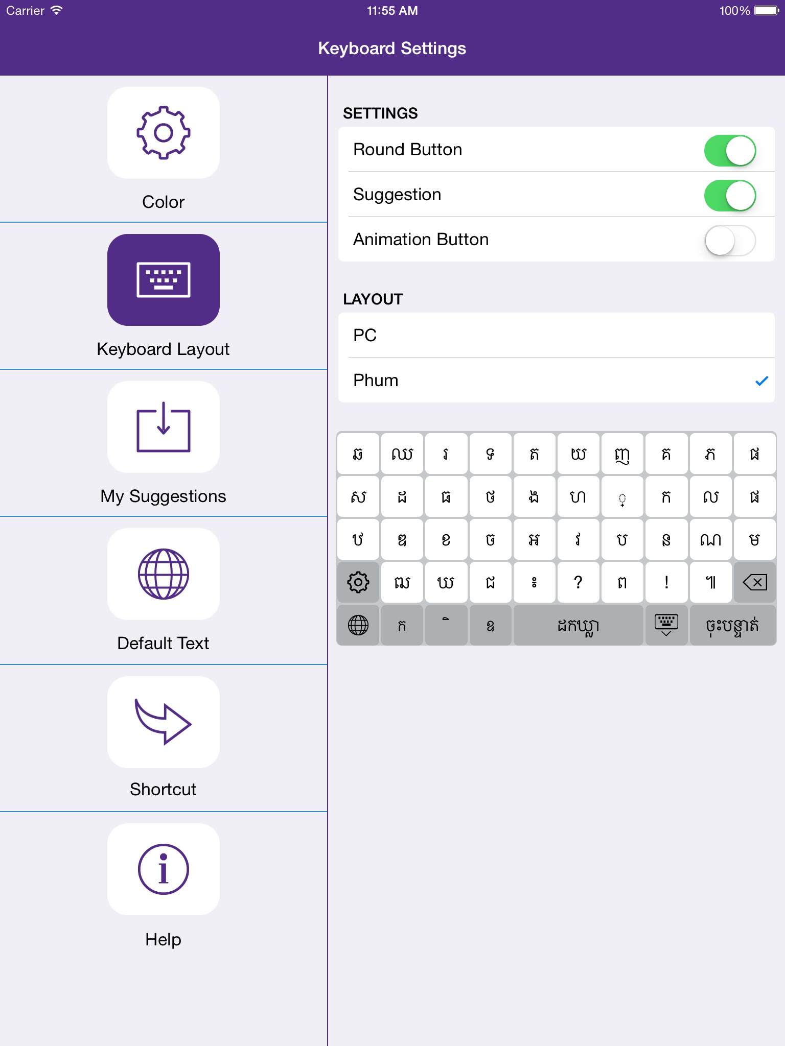 Convenience Khmer Keyboard for iOS devices.
