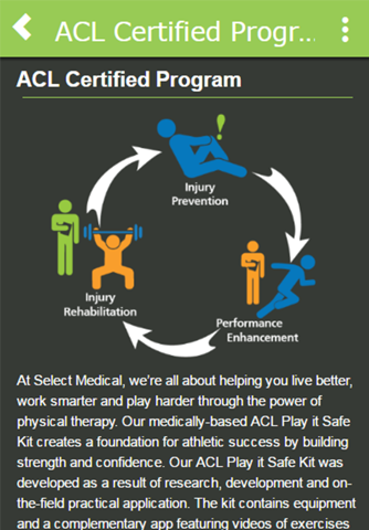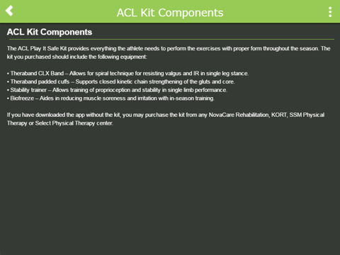 Welcome to ACL Play it Safe! This interactive app is an important part of the comprehensive program developed by Physio, in conjunction with TheraBand™ and Cramer Sports Medicine®. This program includes standardized equipment and exercises that can easily and efficiently be implemented as part of your practice. By performing the exercises provided correctly, the ACL Play it Safe program will help drive improvements in athletic performance and reduce the risk of an injury. Let us help you move and perform at your best!