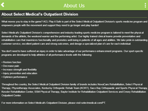 Physio is part of Select Medical’s Outpatient family of brands.
