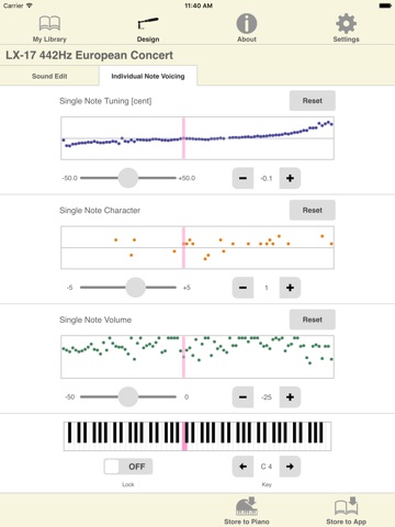 - Graphically adjust the pitch, level, and tonal character independently for each of the piano’s 88 notes.
