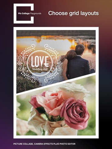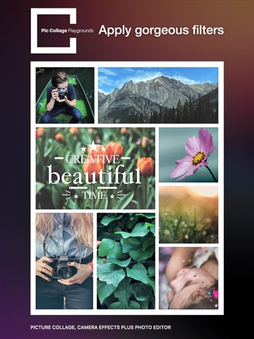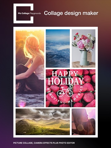Pic Collage Playgrounds satisfies your desire to share multiple photos simultaneously with your friends. It shines with adjustable layouts, powerful photo editor that let you easily create collage artworks!e lower-left frame icon, and swipe to select a frame to make an instant collage!