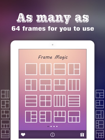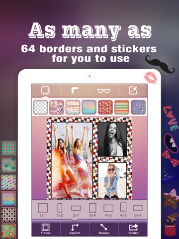 Pic Frame Magic enables you to share multiple photos with your friends at one time via Facebook, Twitter or Instagram. Therere many frames, colors, filters and stickers for you to use.