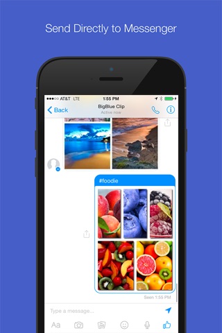 Quickly combine multiple photos into one beautifully framed picture and instantly share to Messenger.