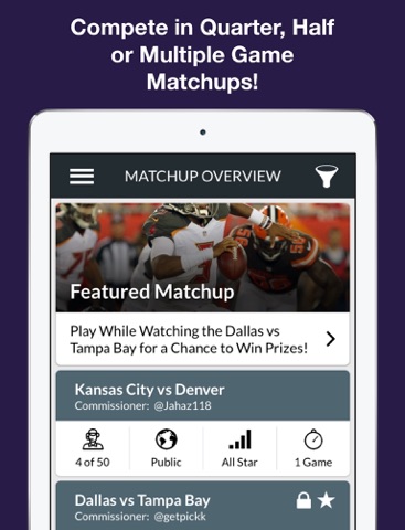 Compete against your friends, family or your fantasy league. With our convenient side chat, you can trash talk and react to the game while playing.