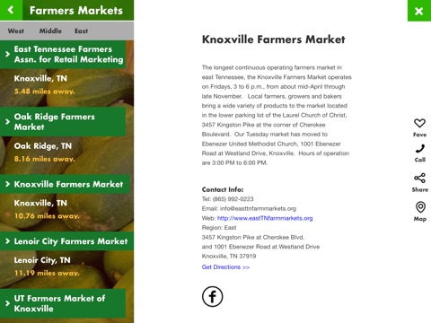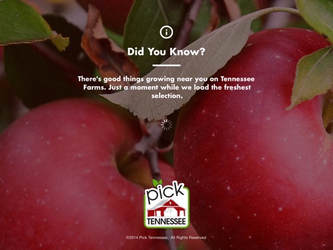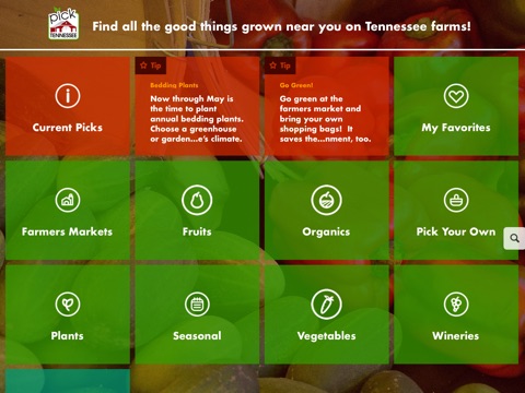 The Pick Tennessee Products mobile app helps you easily find farms, farmers markets, foods, and farm fun closest to you! The app uses direct GPS mapping to get you where you need to be. Pick Tennessee Products is the longstanding statewide campaign developed by the Tennessee Department of Agriculture to connect customers to locally grown or locally made products and farm-related activities.