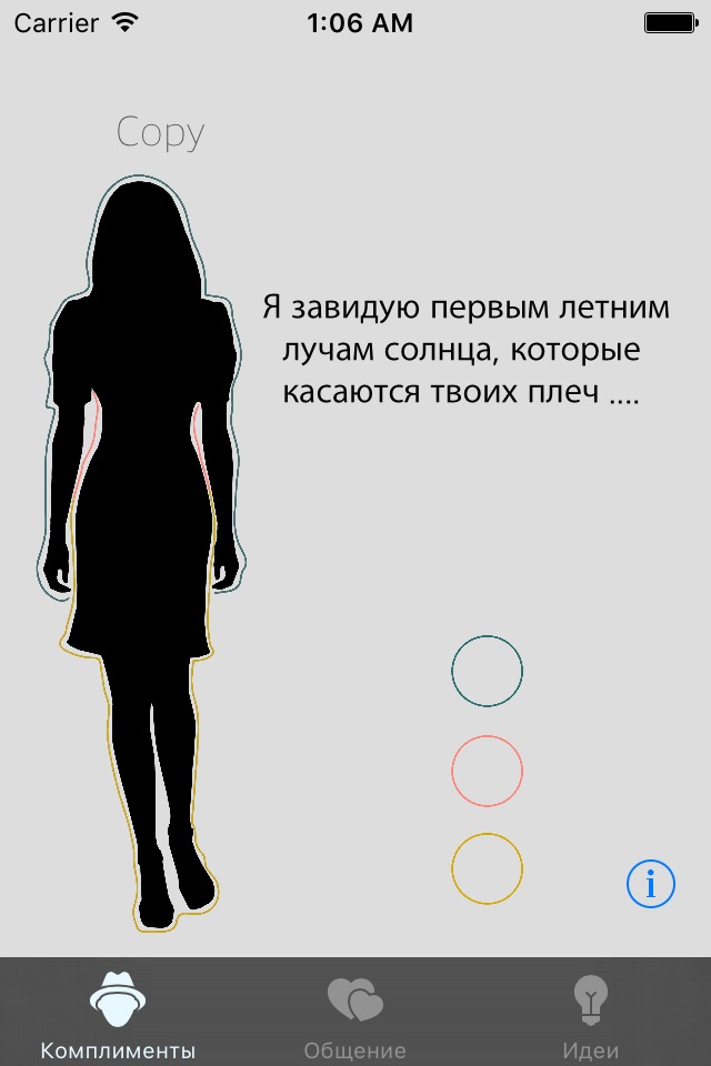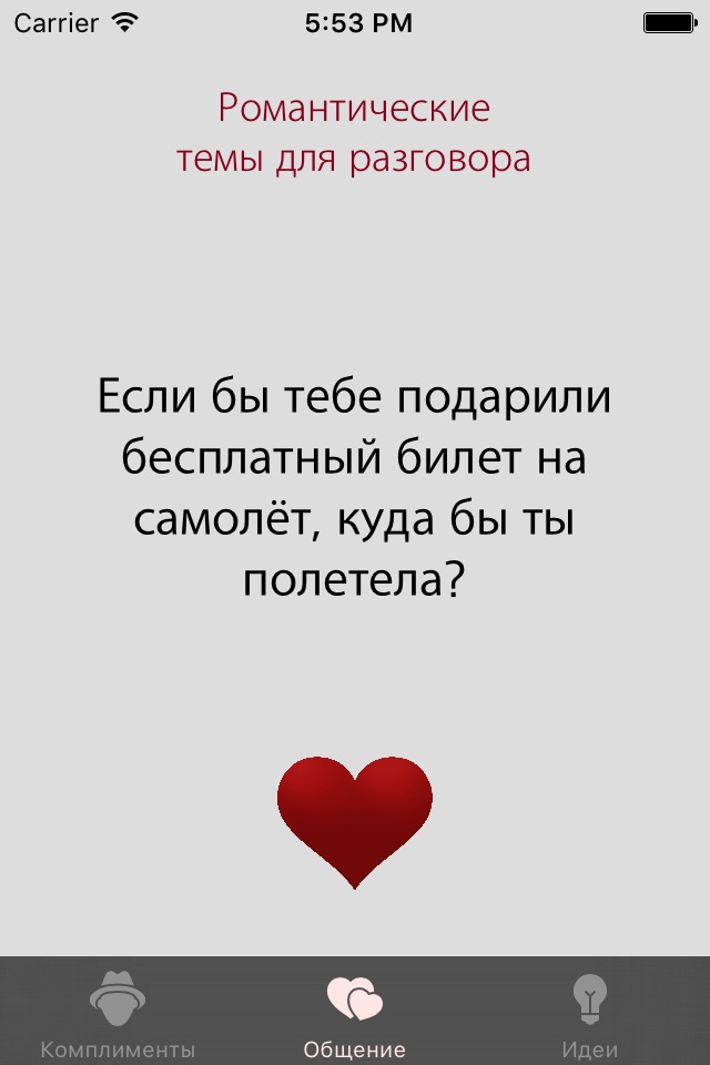 Коллекция приложения содержит большое количество комплиментов для каждой части женского тела, а также креативные идеи для свиданий и интересные темы для разговора. База комплиментов, идей и тем для общения постоянно обновляется и дополняется!