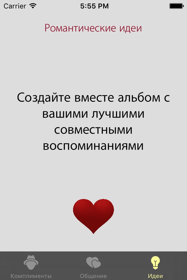 В приложении Вы найдёте множество интересных,необычных и креативных идей для создания романтической атмосферы свидания