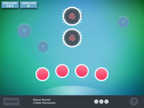 Tune in to Deans opening groove and tap the play button to set the stage. You can play some music with the notes to hear the different sounds. Hit the start button when youre ready. The low note (or reference tone) plays three times to tune your ears and then a target plays. Match the target notes, melodies, and harmonies by tapping and dragging your note choices into the target.