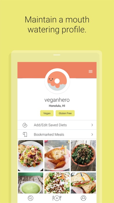 Vegan? Paleo? Gluten Free? Enter in your dietary preferences and location to browse photos of diet approved dishes near you. See something you like? Get directions to your next meal. See a lot of things you like? Bookmark dishes for next time.