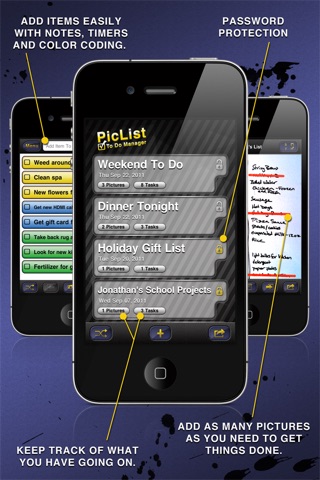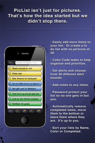 PicList is a powerful, useful and simple to use to do management application with all the features you would expect to find like reminders, sorting, password protection and color coding tasks. But it also has the unique ability to instantly turn anything into a list without having to type it into your phone.