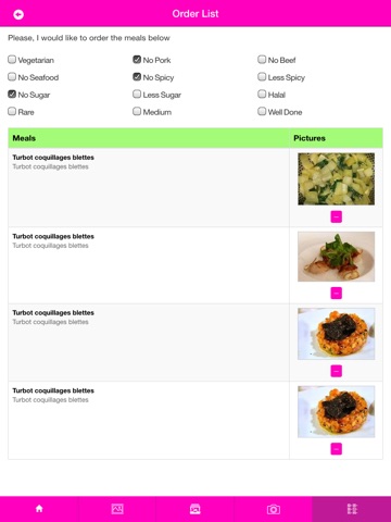 - Add the pictures of the meals in your Order List… then show it to the restaurant staff for ordering
