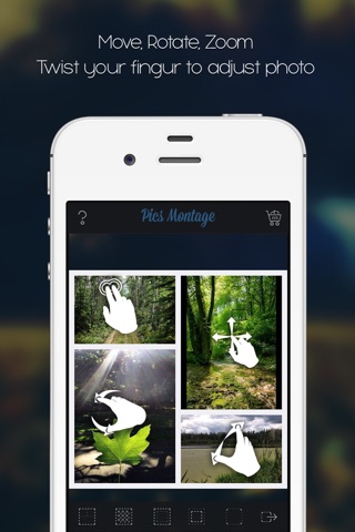 - Zoom, rotate and adjust photo using a simple tap of your finger!