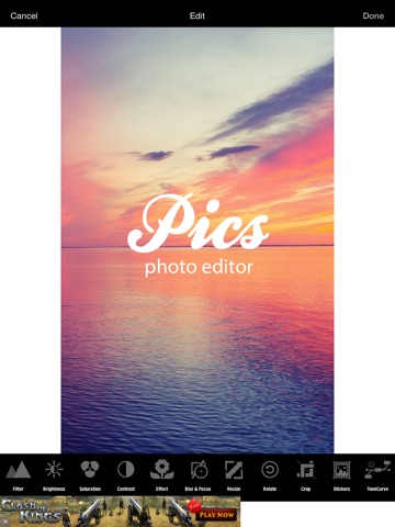 A powerful editor with many amazing effects. Pics is a fun and simple way to make beautiful photos in seconds. Use professionally designed filters, creative stickers and frames, touch-up tools and more to create and share amazing pics!