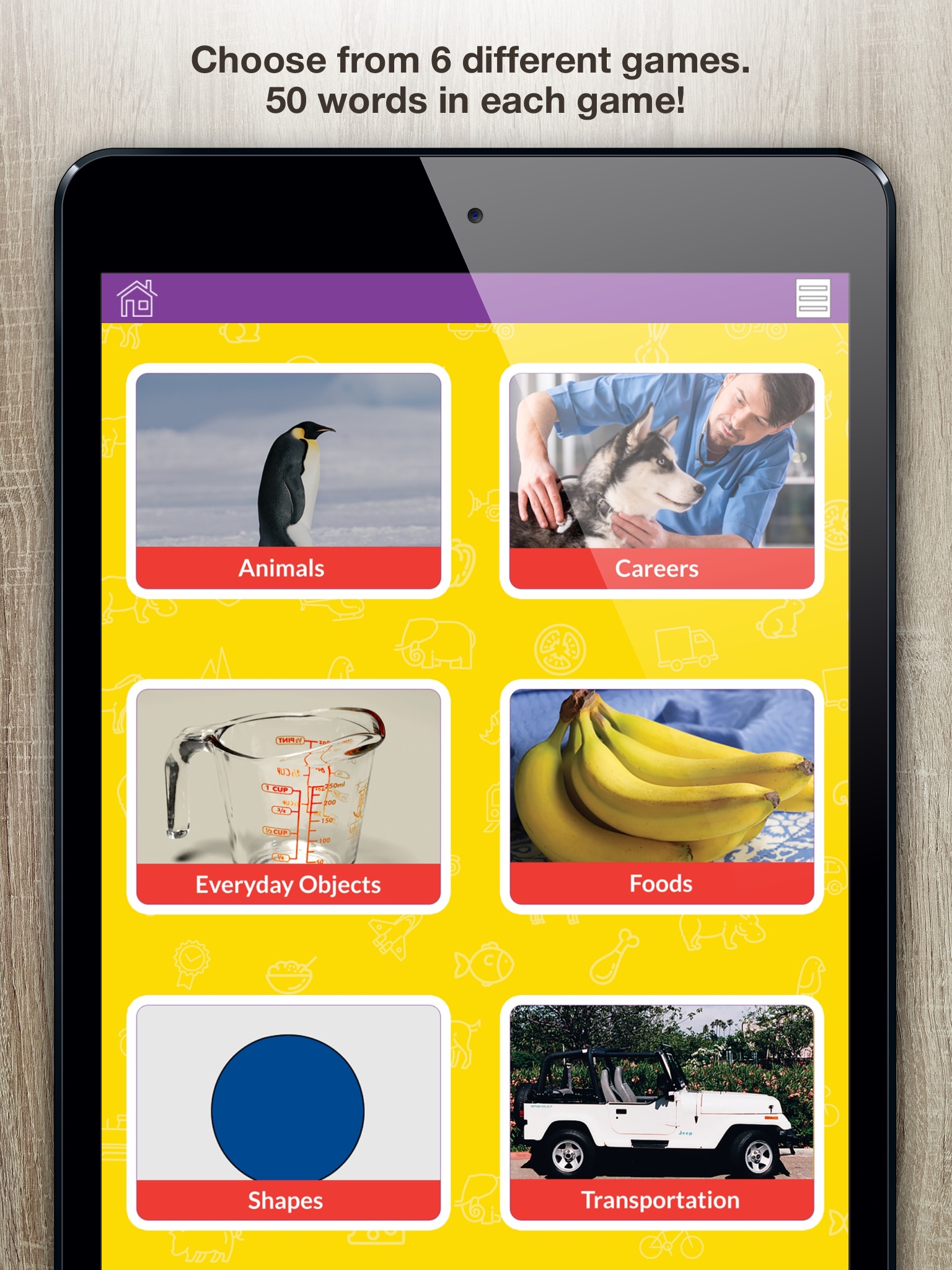 Bingo is a true favorite in the classroom and at home. Kids won’t even know they’re learning basic picture word recognition while they listen intently to match the beautiful photographs on their player’s cards with the corresponding words spoken by the instructor or through the app. Ages 3 and up