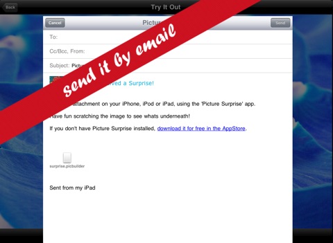 Picture Surprise lets you send a gift-image including your own small audio recording to anyone you want in four quick steps: