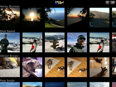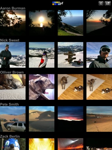 •Thumbnails are arranged by person in a "feed" or "newest image first" format.