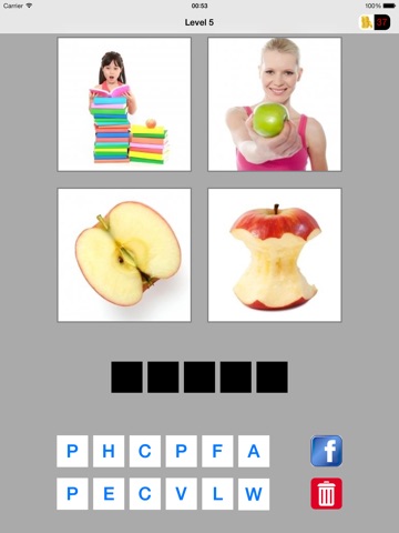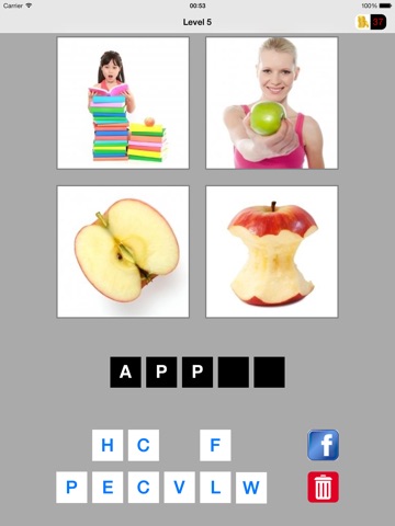 Famous puzzle game. Each level has four different pictures. You have to find the word matching to all four pictures.