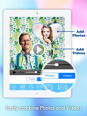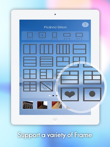 Quickly combine multiple photos and videos into stunning Video and Photo collage. Pic&Vid Stitch also divides your camera into several section with 57 different layouts to record amazing videos and take stunning photos, for example:
