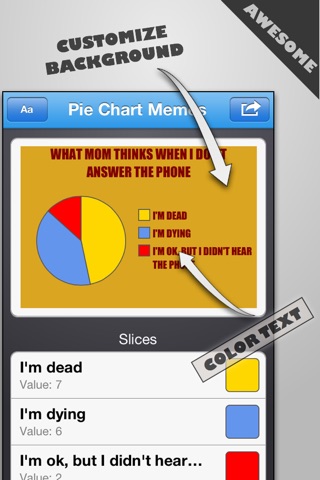 Pie Chart Memes makes it super simple to create hilarious pie memes that you and your friends will enjoy anytime, anywhere. Since Pie Chart Memes lives in your pocket, you will never miss an idea for a great meme again.