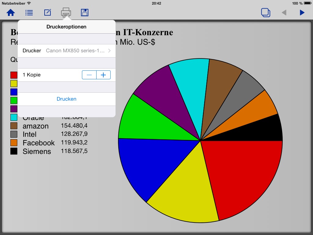 With the new print function the charts can be printed directly from the iPhone or iPad.