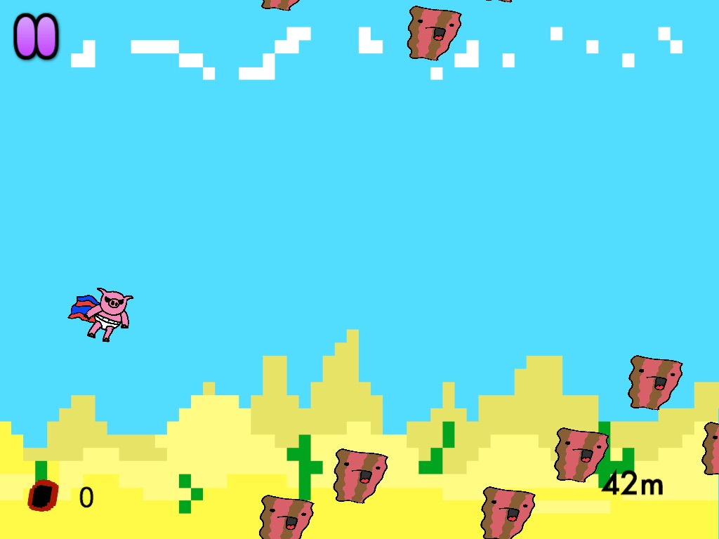 "Pig of Ages" is an exciting game of a lone pig, with the ability to fly! Dodge through all your slaughtered brethren and get to the end! But is there an end? Get power-ups like lasers, ghosts, and carrots! Its a battle to the finish! Set things straight, once and for all.