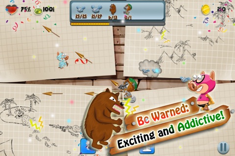 Peace time is long gone ... Control four hero pigs and battle against enemy creatures led by their evil counterparts before its too late!
