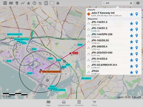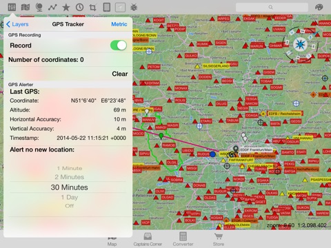 Create your own map style, many different map layers and different databases (aeronautical / navigation-aids and Points of Interest´s etc.). Insert, store and/ or edit your flight planed route by using ICAO/ IATA-codes, waypoints, VOR´s NDB´s or Lat/ Long. Find positions with a separate Lat/ Long finder.