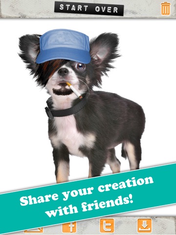 When you’ve selected your model, dress up your dog with fancy outfits and give it a makeover with tons of funny hairstyles, chic accessories, and funky hats – all with just a finger swipe.