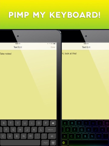 Pimp My Keyboard allows you select and configure Color keyboard style and Text arts inside this app.
