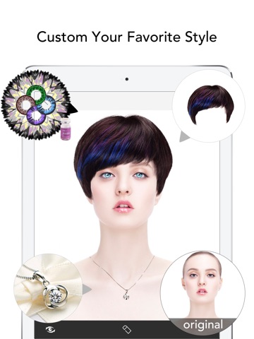 Try on over 300 contact lenses and jewelry style: