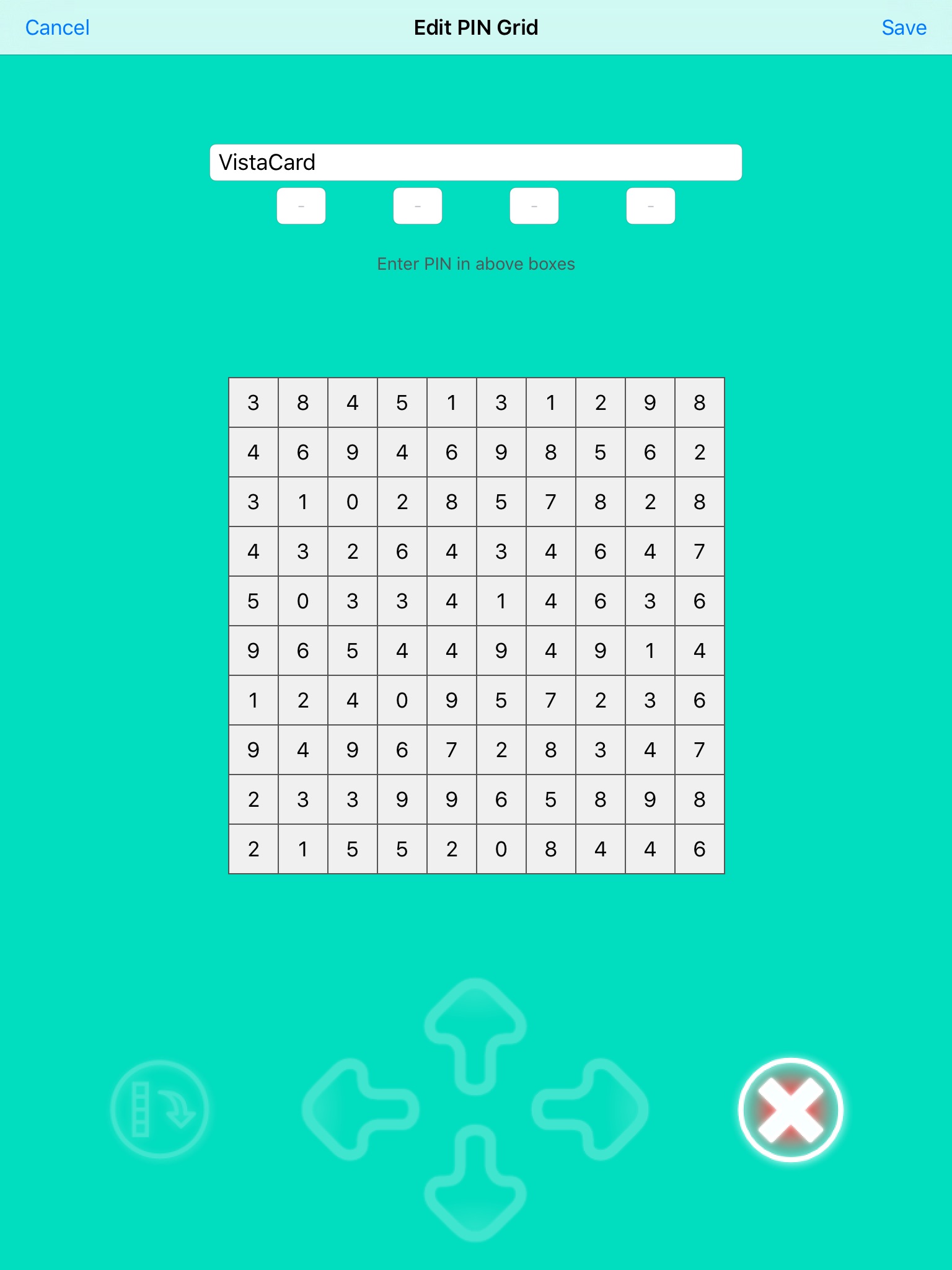 So to keep your PIN safe, place the numbers somewhere that you will be able to remember within the grid. Practice by making a few dummy grids too as they’ll hide that information even better. For security, the PIN is never stored itself, rather its the grid which includes the PIN. Once stored, even PIN Store doesnt know where you placed your PIN! Plus if you can use the edit function to break the PIN up, for example by putting two digits on the left and two at right, helps too. Keep your PIN code in plain sight and secure as only you know where in the grid!